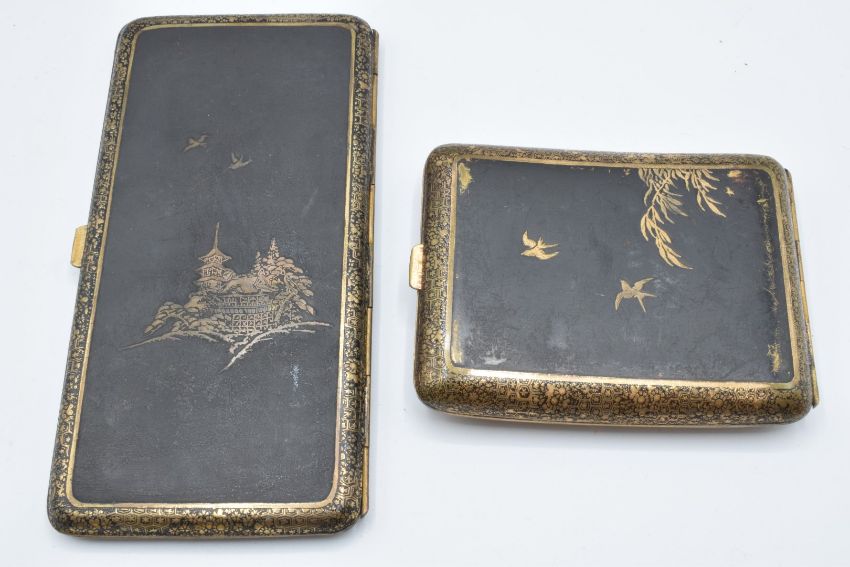 Two Japanese cigarette cases, 16 x 8cm & 10 x 8cm