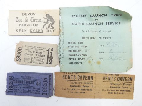 Postcards and ephemera to include vintage Haldon Pier, Torquay tickets, Teignmouth and Shaldon bridge ticket, bus ticket advertising Paignton Zoo and Circus, Teignmouth chair tickets, postcards to include Cross Cheaping, Coventry, Corbie, Bobby Leach (Niagara Falls), Welbeck, Durdham Down, Bristol, continental scenes, Matlock, Bath, Newcastle, Edinburgh, collection of Charlie Chaplin / humorous etc