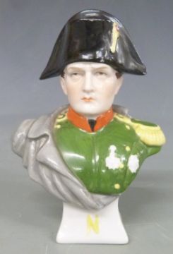 Continental bust of Napoleon and a reclining figure, tallest 12cm