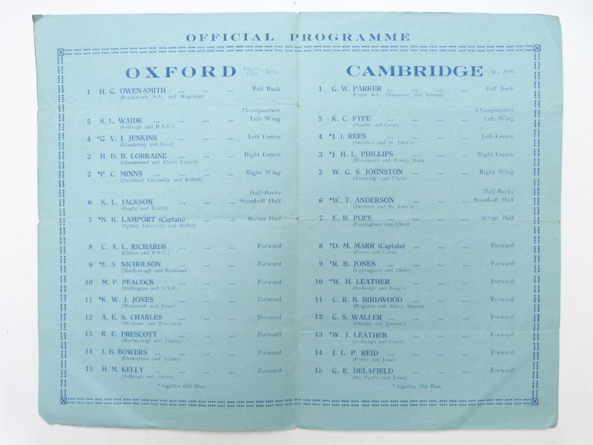 Four Rugby programmes Oxford University v Cambridge (varsity match) 1919, 1931, 1932 and 1933