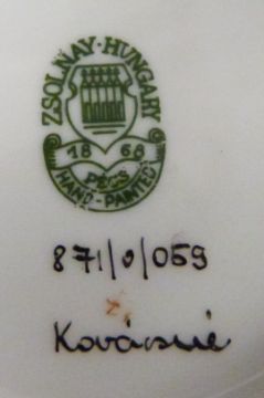 Three Zsolnay Pecs vases and an advertising plaque, tallest 27cm