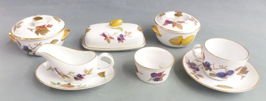 A collection of Royal Worcester Evesham pattern dinner, tea and oven ware including covered tureens, fruit bowl, plates, ramekins, coddlers etc, approximately 77 pieces