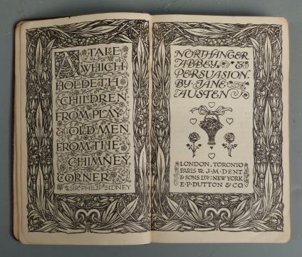 Jane Austen Northanger Abbey 1916 in gilt cloth, Pride & Prejudice 1933, Pride & Prejudice Theatre Programme designed by Rex Whistler (1936), Mansfield Park, Michael Sadleir Fanny By Gaslight Constable 1940 first edition in cloth with gilt labels, E.M. Forster A Passage To India (6)