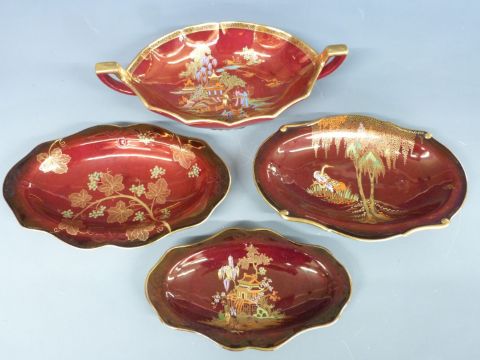 Carltonware, Crown Devon and similar lustre ware, largest H8 x L32cm