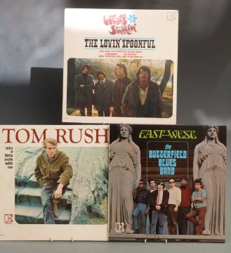 Elektra - three albums including Tom Rush - Take A Little Walk With Me (EKL308), The Butterfield Blues Band - East West (EKL315) and What's Shakin' (EKL4002) with insert. All UK issues in US, records and covers generally Ex, less tape residue and stickers to rear