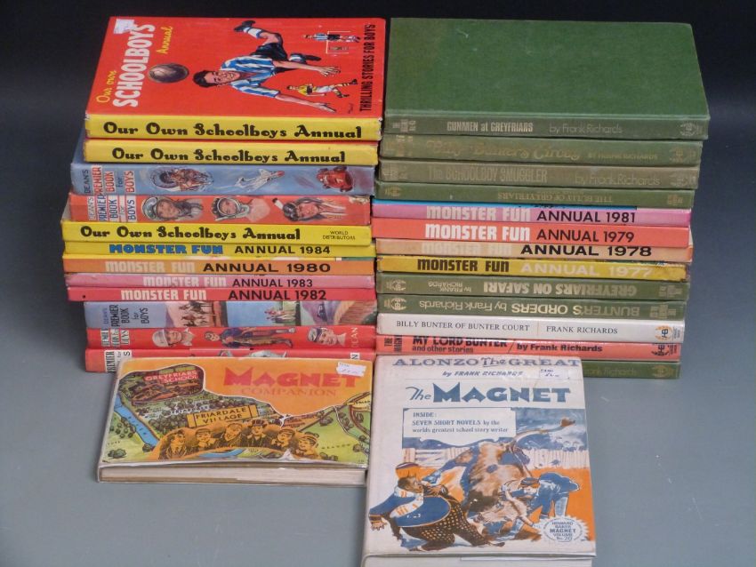 Twenty-seven mainly boys' annuals and books including Frank Richards Magnet Stories, Dean's, Our Own Schoolboy's Annual etc.