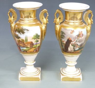 Two pairs of 19th/20thC Continental vases and a Continental figure of Cyrano de Bergerac