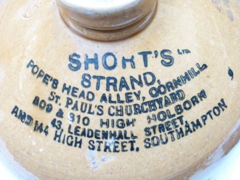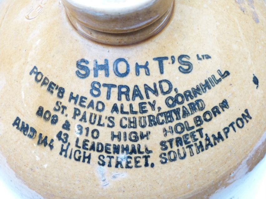 Four stoneware flagons including Thomas Pullen, Royal Oak, Chipping Sodbury, Shorts Southampton, Price Bristol and Skey Tamworth, tallest 46cm