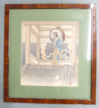 A set of five 19th/20thC Japanese woodblock/ prints including Samurai warriors, each 26 x 23cn