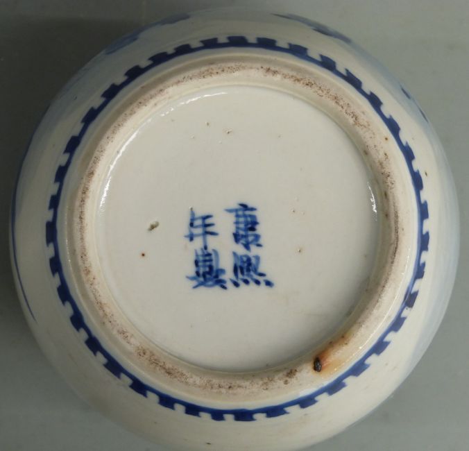 A 19thC Chinese blue and white ginger jar decorated with musicians and with four-character mark to base, H13.5cm