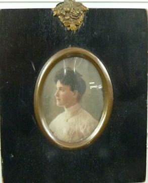 Two watercolour portrait miniatures including an Edwardian lady, 5.5 x 4cm, the other initialled BB