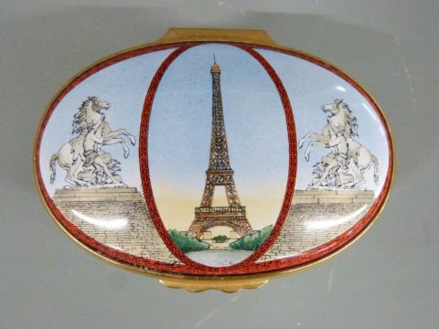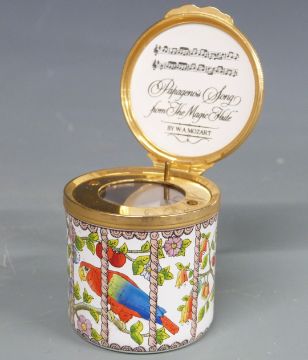 Four Halcyon Days enamel boxes including limited edition 'The Last Time I Saw Paris' 30/300, two Queen Mother commemoratives and a Mozart Papageno's Song