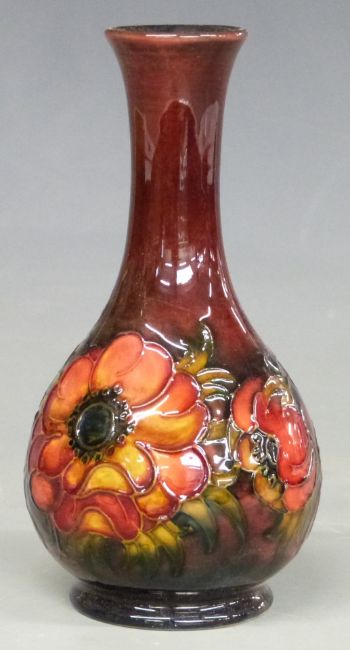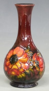 Moorcroft flambé pedestal vase in the Clematis pattern, with Queen Mary paper label and impressed marks to base, height 15.5cm