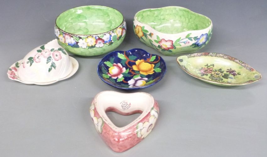 A collection of Maling and Royal Winton lustre ware dishes, bowls, vases and jugs in various patterns including Astoria, Rosyth etc, tallest 25cm