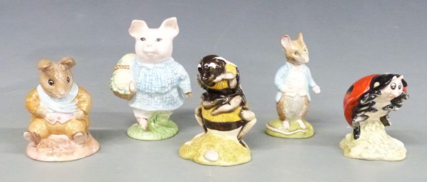 Ten Beswick/Royal Albert Beatrix Potter figures including Little Black Rabbit, Johnny with Bag, Amiable Guinea Pig, Babbity Bumble etc