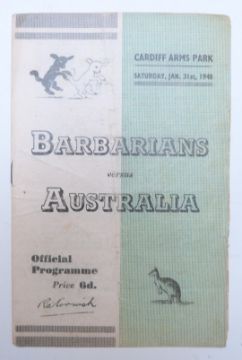 Fifteen Rugby programmes c1948-1954, mostly international touring sides including Barbarians v Australia, England v Australia, South Africa v Western Counties, Barbarians, Newport, Pontypool and Newbridge, Cardiff, Wales, New Zealand v Newport, Wales x 2, Southern Counties, Western Counties, Cardiff etc