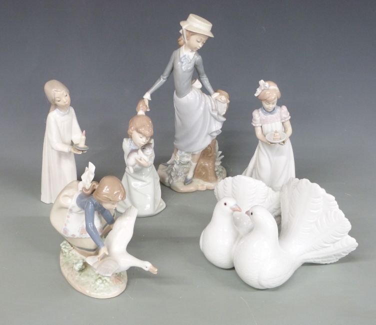Six Lladro figures, tallest 26cm