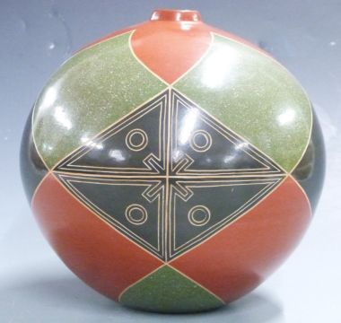 Emmanual Maldonado signed geometric spherical vase, H22, diameter 22cm