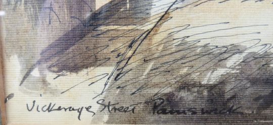 Gerald Cox watercolour Vicarage Street, Painswick, titled lower left and signed and dated 72 lower right, 25 x 37cm