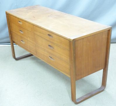Uniflex retro/ mid century modern teak chest of six drawers with inset handles, W131 x D51 x H71cm