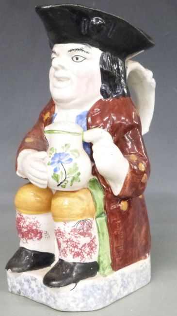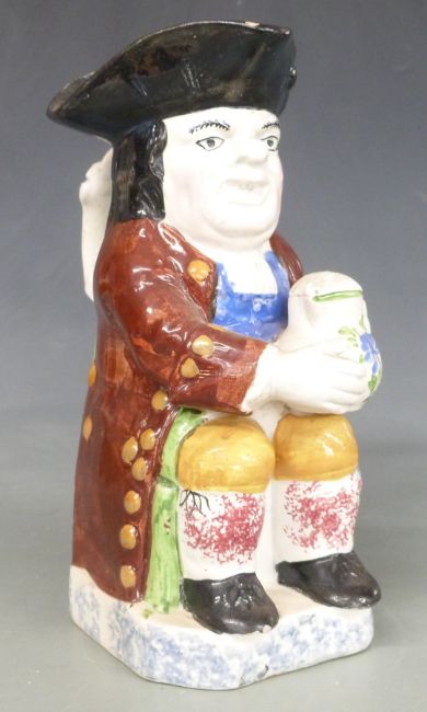 A 19thC Toby jug with sponge decoration and prominent teeth, H24cm