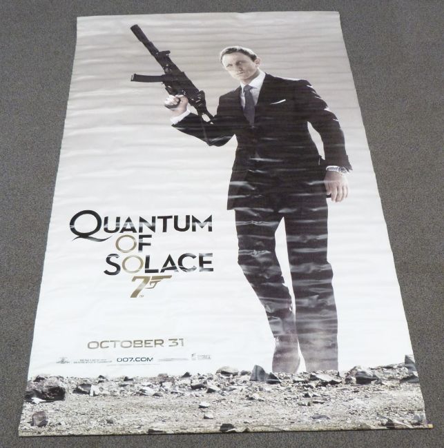 Three large cinema film posters comprising Harry Potter 7 part 2, James Bond Quantam of Solace and Batman The Dark Knight, each approximately 152 x 320cm