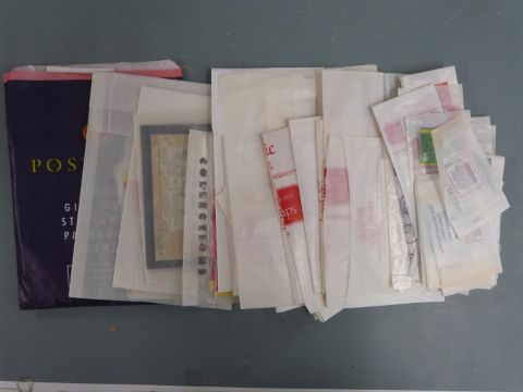 A quantity of GB mint sets of commemorative stamps and stamp booklets, together with a Royal Mail album, loose stamps, postcards etc