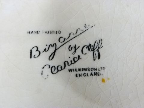Clarice Cliff for Wilkinson Pottery Bizarre ribbed pedestal bowl decorated in the Delecia pattern, height 12cm, diameter 24.5cm