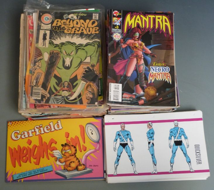 Over 90 various Marvel, Charlton and other comic books including The Official Handbook of the Marvel Universe, Exotics, Mantra, Monster, Vamps etc.