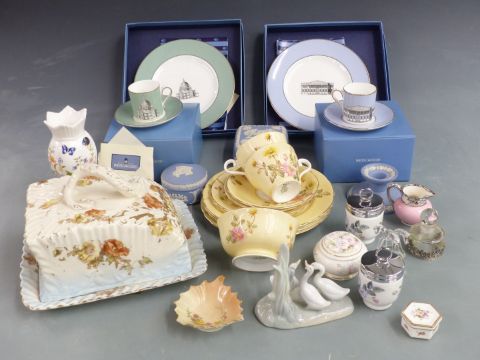A collection of boxed Wedgwood ceramics including Grand Tour Collection, Aynsley teaware, Worcester egg coddlers, Gray's small pottery jug etc