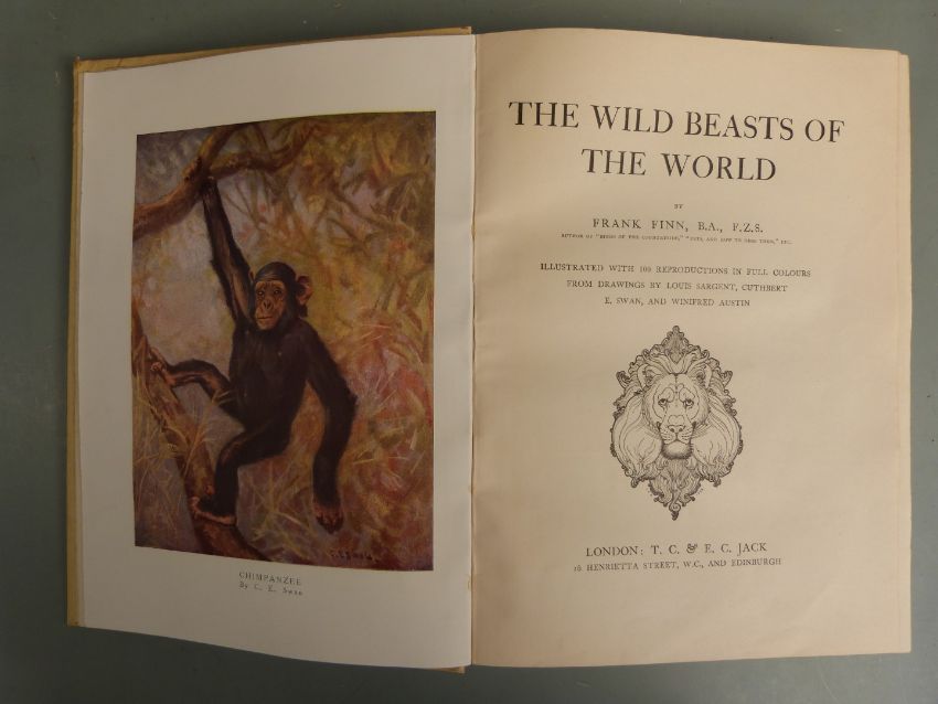 The Wild Beasts of The World by Frank Finn, illustrated with 100 reproductions in full colours from drawings by Louis Sargent, Cuthbert E. Swan and Winifred Austin, published T.C. & E.C. Jack (c1910) with full-page plates, bound in publisher's cloth with colour illustration on front