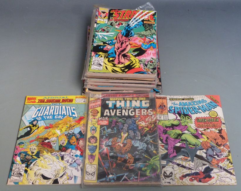 Thirty-eight Marvel comics including Fantasy Masterpieces, Conan The Barbarian, Fear, Monsters on the Prowl, Ka-Zar, The Thing and the Avengers, Guardians of the Galaxy etc, many early issues.