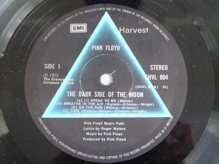 Pink Floyd - Dark Side Of The Moon (SHVL 804) A-9/B-9, Wish You Were Here (SHVL 814) A-1/B-3, Animals (SHVL 815) A-4/B-4, The Wall (SHDW 411/412) A-2/B-3, A-3/B-2, A Momentary Lapse Of Reason (EMD 1003). Records and cover appear generally Ex