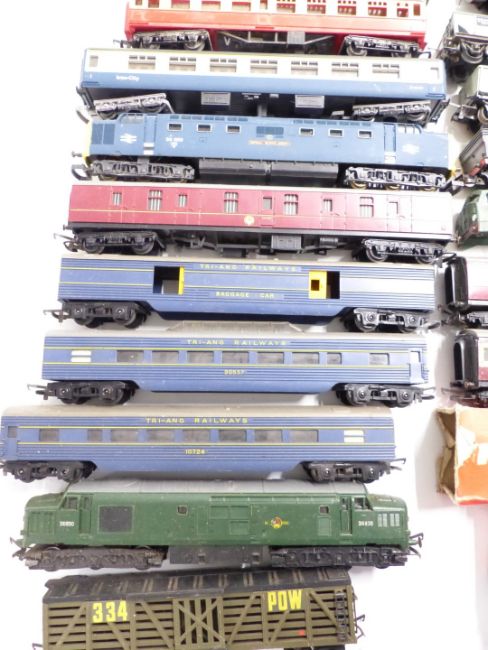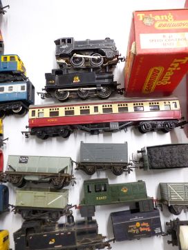 A collection of Tri-ang, Hornby Dublo and similar 00 gauge model railway locomotives, rolling stock, buildings and accessories, some in original boxes.