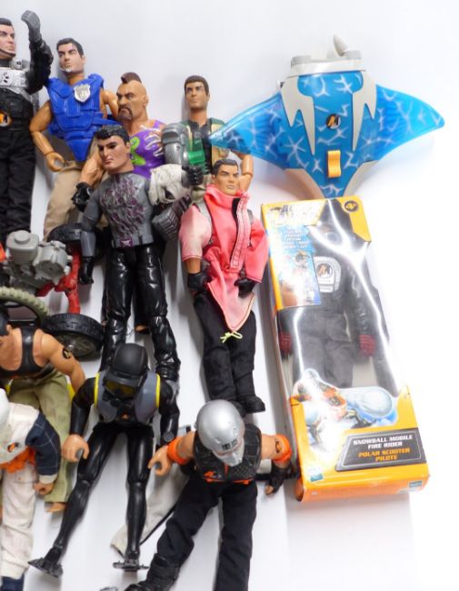 Twenty-one Action Man figures in various outfits together with vehicles, animals and accessories, one in original box.