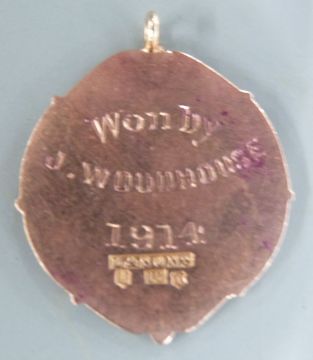 A 15ct gold fob for "Edinburgh & District Motor Club Ltd, Scottish Trials" engraved verso "Won by J.Woodhouse 1914", weight 8.9g