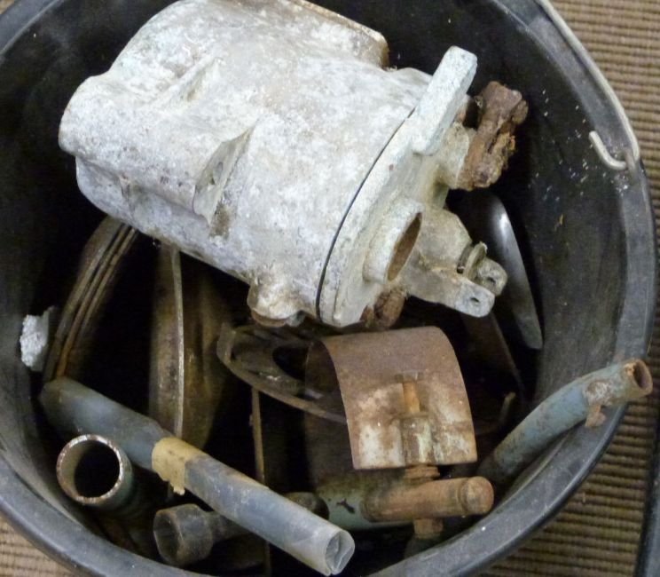 Motorbike parts including gearbox, swing arm etc