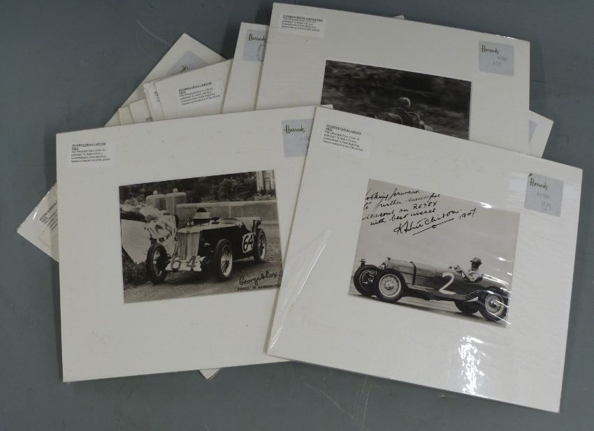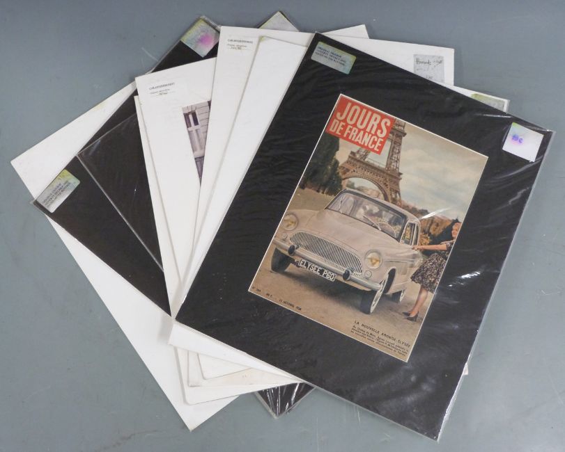Approximately 25 mounted vintage motoring and similar interest prints and adverts, largest 50 x 38cm