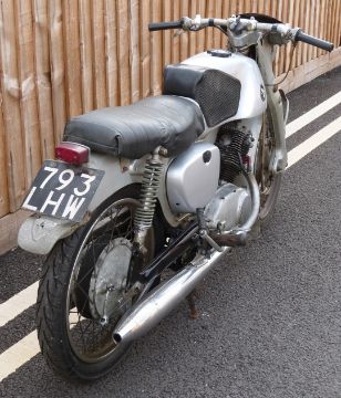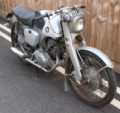 1961 Honda CB92 Benly Sport 125cc twin cylinder OHC motorbike, purchased by the vendor's father in 1965 to commute to work, unused for many years but dry stored, with period road test and other paperwork, odometer records 31388 miles, with V5c and 1965 buff logbook10%+VAT buyers premium on this lot