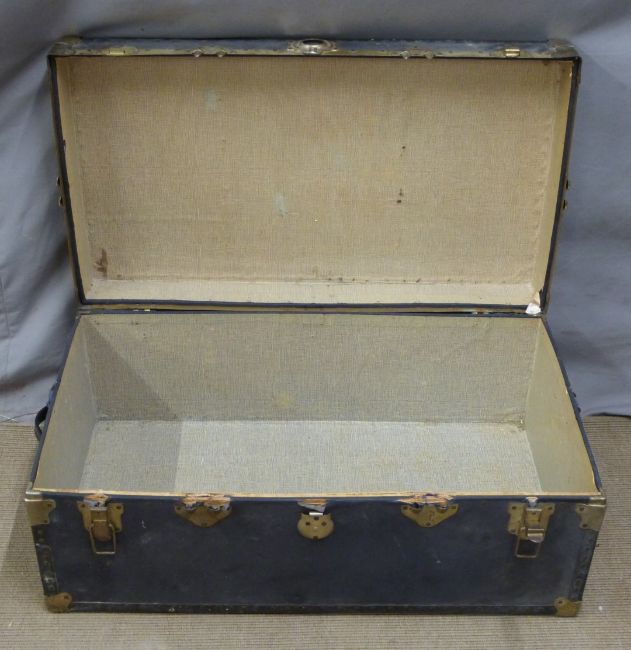 A vintage metal bound trunk, W92 x D51 x H37cm