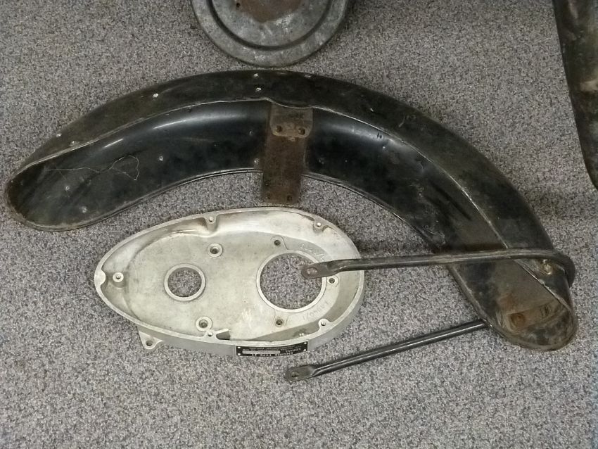1962 Panther Villiers 350cc twin cylinder two stroke motorbike, registration number 308EWA. Rear mudguard has original Frank B Roper of Sheffield suppliers plate. Including engine casing, front wheel, mudguard and spare fuel tank. With restoration notes/ research and V5c10%+VAT buyers premium on this lot