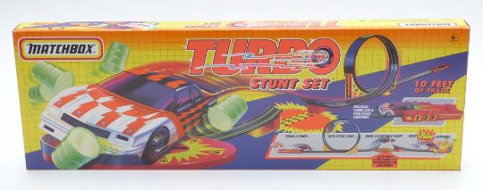 Five Matchbox 1-72 diecast model vehicles 18, 33, 54 and Sreakes 51 and 60 together with two Matchbox Speed System, sets Head-To-Head Challenge and Stunt Set, all in original boxes.