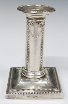 Victorian pair of hallmarked silver candlesticks with embossed swag decoration, London 1895 and 1897, maker Thomas Bradbury & Sons, height 11.5cm