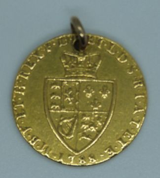 1788 George III gold guinea, pierced with loop