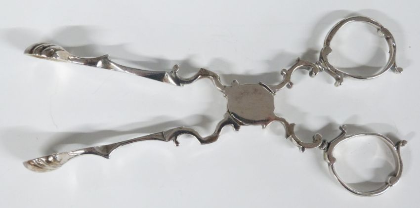 Georgian pair of hallmarked silver sugar nips, marks indistinct but with lion passant and letter N, possibly for Francis Nelme, length 12cm, weight 35g