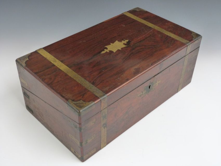 Victorian brass-bound rosewood writing slope, W45 x D25 x H17cm