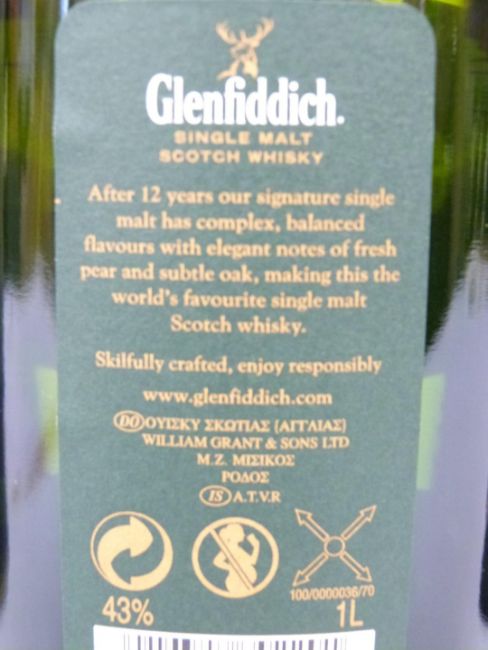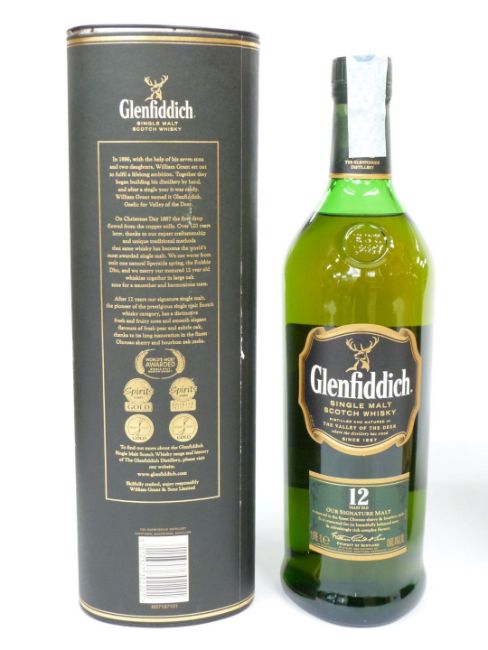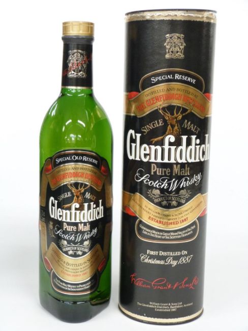 Two bottles of Glenfiddich Scotch Whisky, one 12 year old Signature Single Malt, 1 litre, 43% vol, the other Special Old Reserve Single Malt, 70cl, 40% vol, both in presentation box