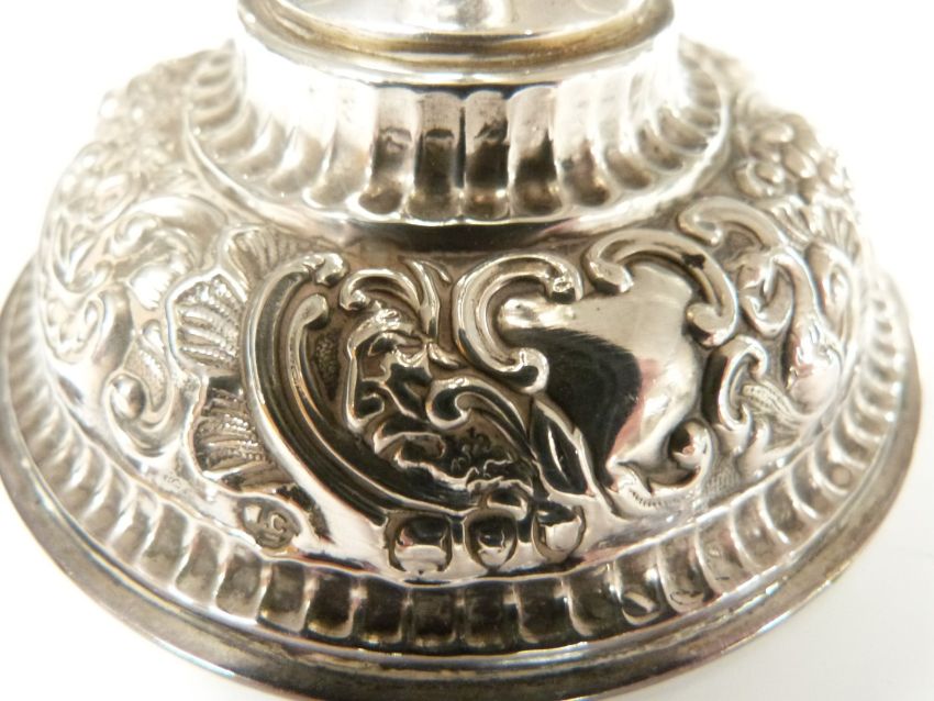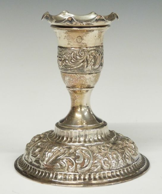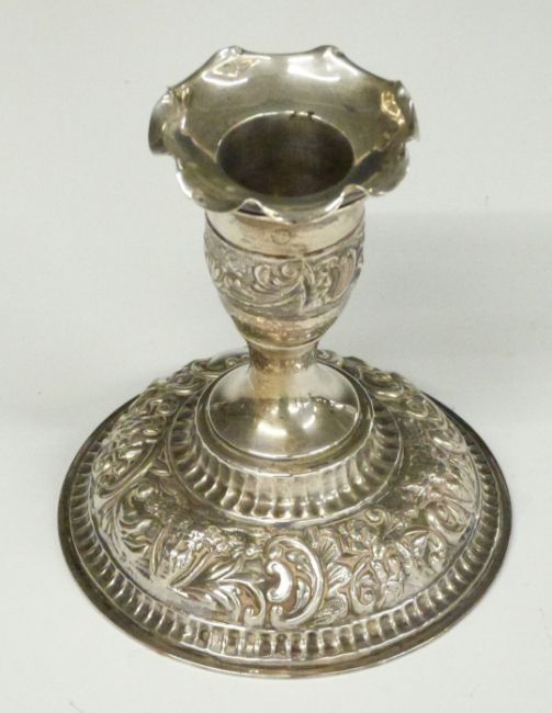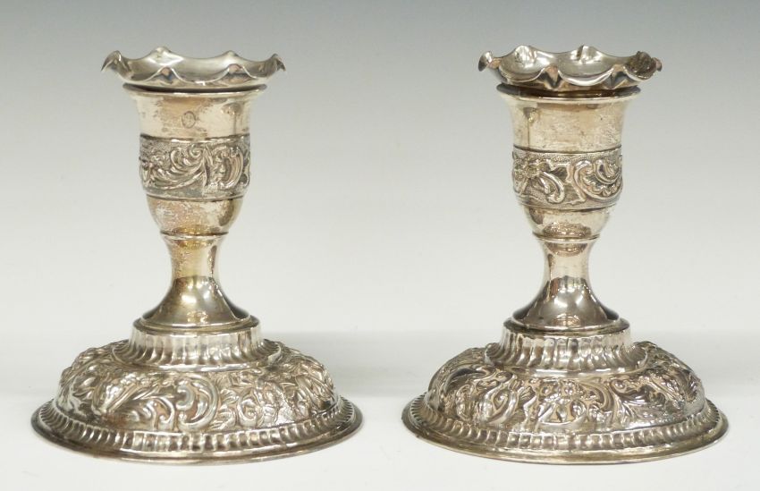 Pair of Victorian hallmarked silver squat candlesticks, London 1895, maker William Comyns & Sons, height 9.5cm
