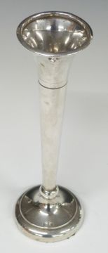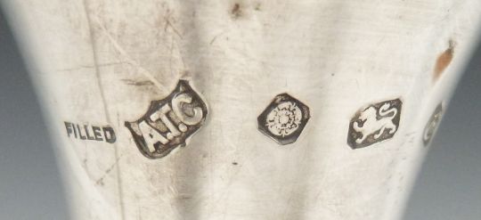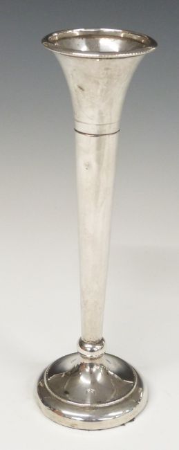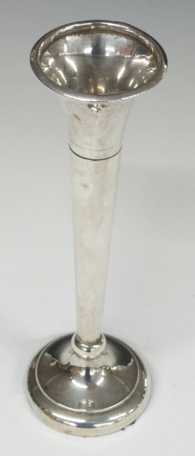 Pair of feature hallmarked silver trumpet vases, Sheffield 1977, maker A T Cannon Ltd, height 22cm