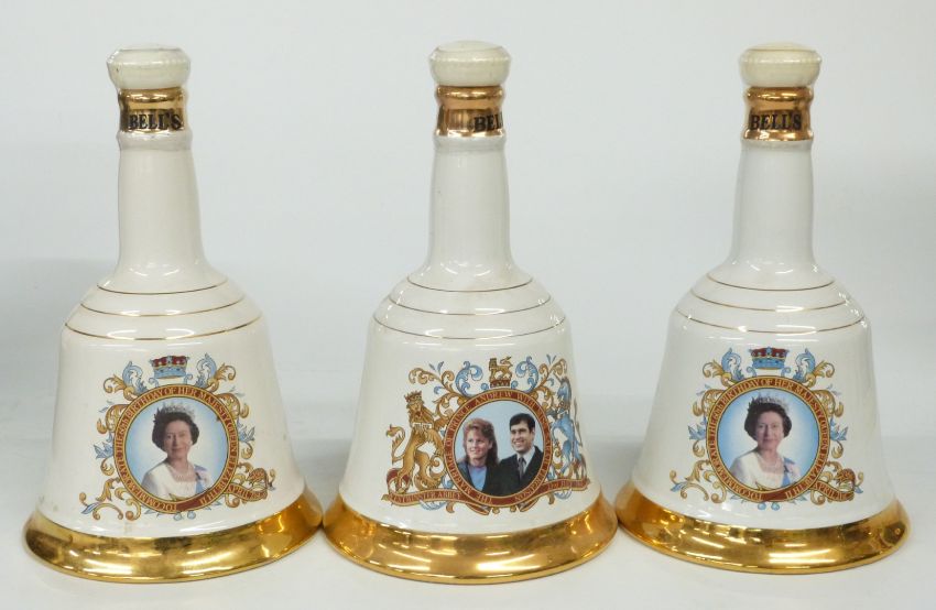 Eleven Bell's, Beneagles and Whyte and Mackay decanters in boxes, including 1989/92 Christmas editions and three Royal Doulton birds of prey